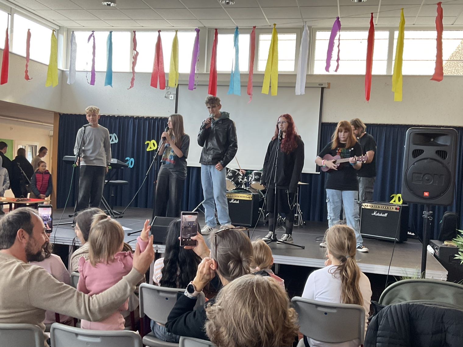 Dass dann sogar das Wetter beim Jubiläumsfest zum 20. Geburtstag unseres Gymnasiums mitspielte und uns erlaubte, den Schulhof mit zu nutzen, war ein zusätzliches “Geschenk von oben”.