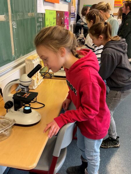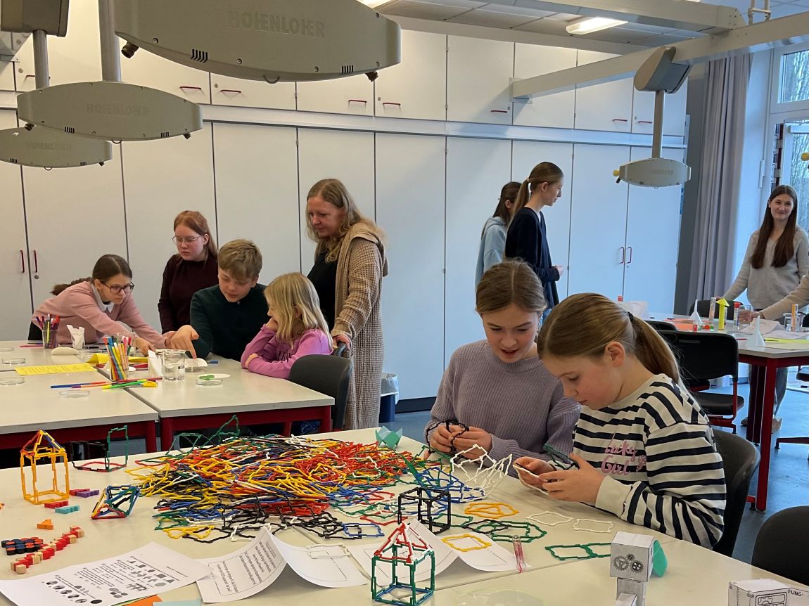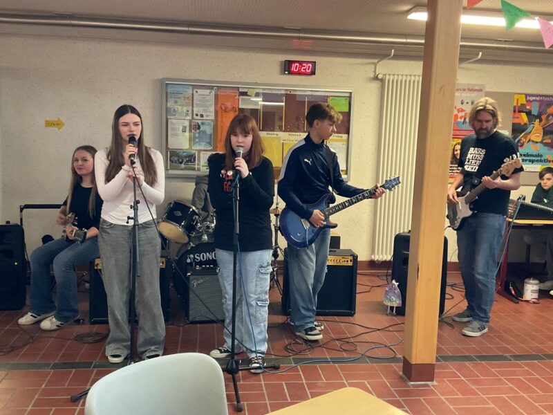 Nach einer kurzen Begrüßung durch die Band und die Schulleitung präsentierten viele motivierte Schülerinnen und Schüler verschiedenste Mitmachangebote für die „Kleinen“. In den Pausenhallen, in Fachräumen und Klassenräumen wurde gebastelt, gerätselt und sogar etwas gewonnen. Auch Ergebnisse aus dem Unterricht und aus Arbeitsgemeinschaften wurden präsentiert. Professionell führte unser 5. Jahrgang die neugierigen Kinder der 4. Klassen durch die Schule.