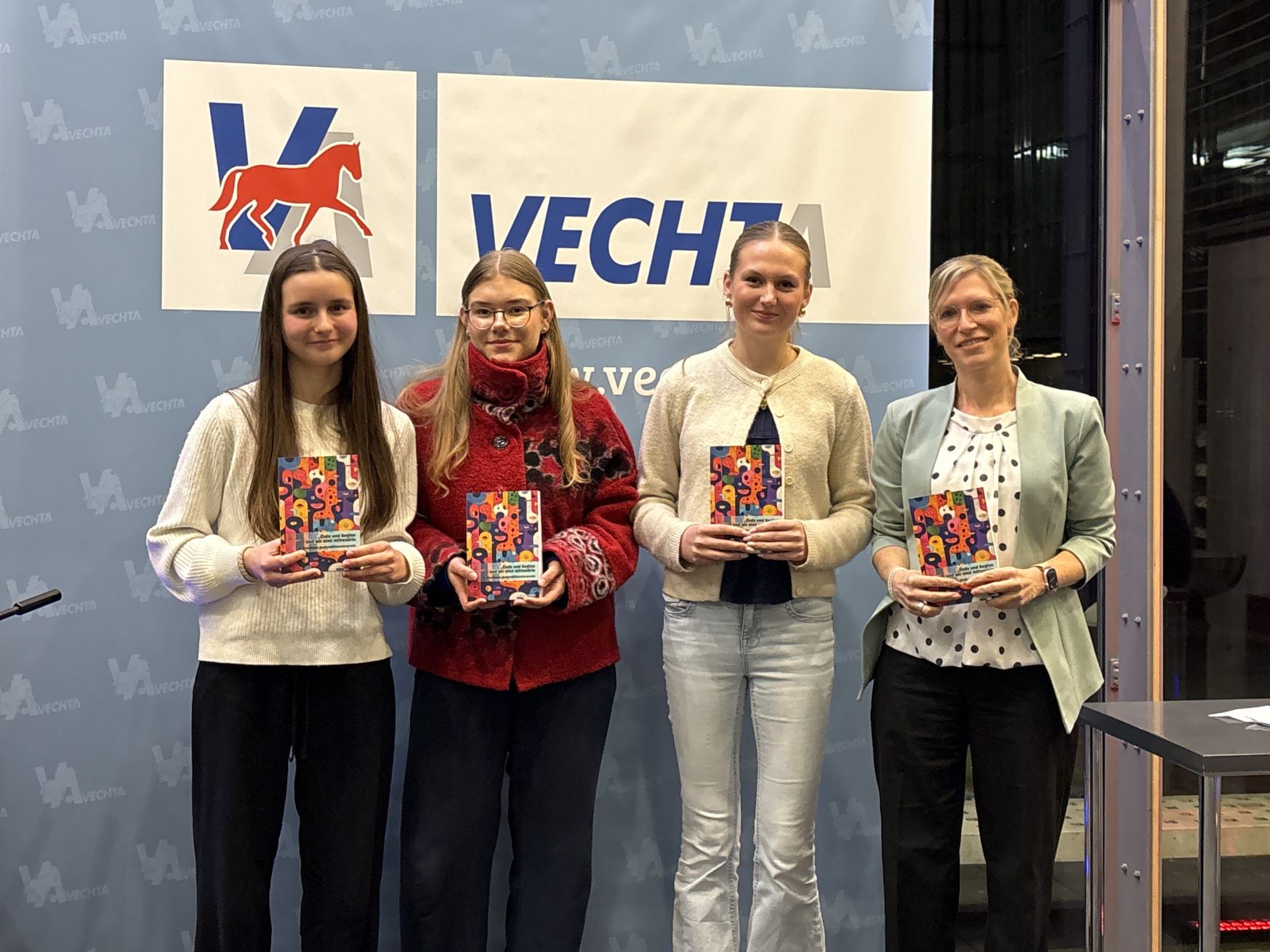 Am 19. Februar fand im Rathaus Vechta die Premiere des Buches und eine Preisverleihung statt, an der Karina, Antonia und Josephina gemeinsam mit Frau Dr. Schneider teilnahmen. Dort wurden die Texte der Preisträger*innen vorgelesen, die sich unter dem Titel „Ende und Beginn – und wir sind mittendrin“ alle mit der Verfassung von Jugendlichen im Heute oder Morgen beschäftigen. Viele der literarischen Texte behandelten dabei kritisch die aktuelle Lebenssituation von Jugendlichen.