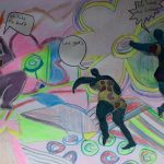 Das große Bild zeigt das Werk von Nele Reppenhagen. Die Künstlerinnen der unteren Bilder sind (von links nach rechts): Clara Steenken, Eske Heidenreich und Viktoria Kirillov.